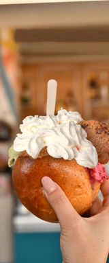Todos los helados se mezclan con leche y llevan topping de nata.Café con leche